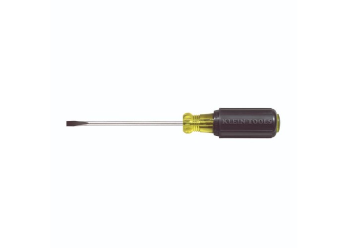 Klein's 3/16-Inch Cabinet Tip Screwdriver features a narrow cabinet tip to make tight spaces easily acceptable. This Cushion-Grip Handle Screwdriver offers the comfort and torque needed for all day work. Its Tip-Ident quickly identifies screwdriver type and tip orientation, and its 4-Inch shaft is heat-treated for greater tool strength.