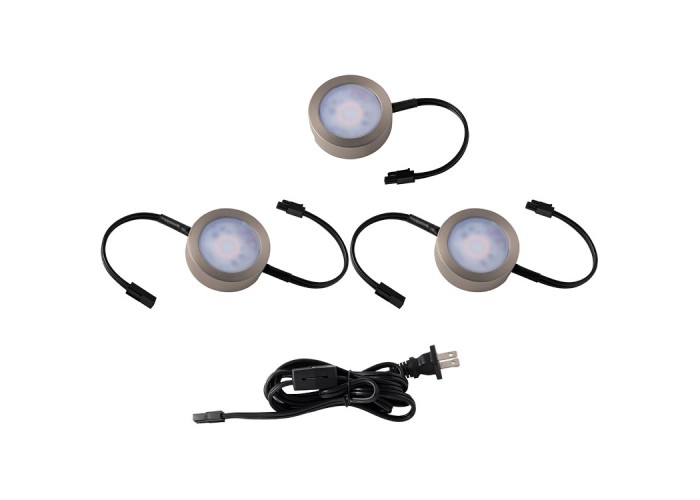 3-CCT Puck Light, Brushed Nickel, 3 Pack