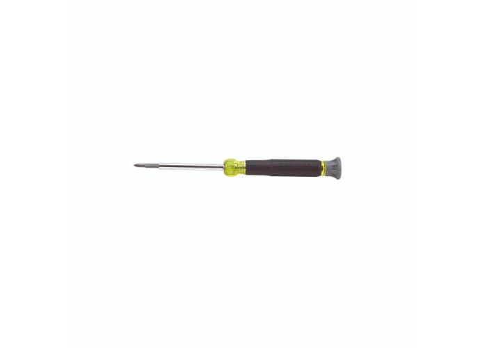 Klein Tools electronics screwdrivers are designed for precision work, and feature a swivel cap for optimum control. Made of the highest quality tempered steel, carefully heat-treated for maximum strength, and precision milled to fit screw openings securely. Rotating caps and Klein's exclusive Cushion-Grip handles offer outstanding comfort and control. Corrosion-resistant chrome plated barrel that includes two double-ended bits that exceed ANSI standards.